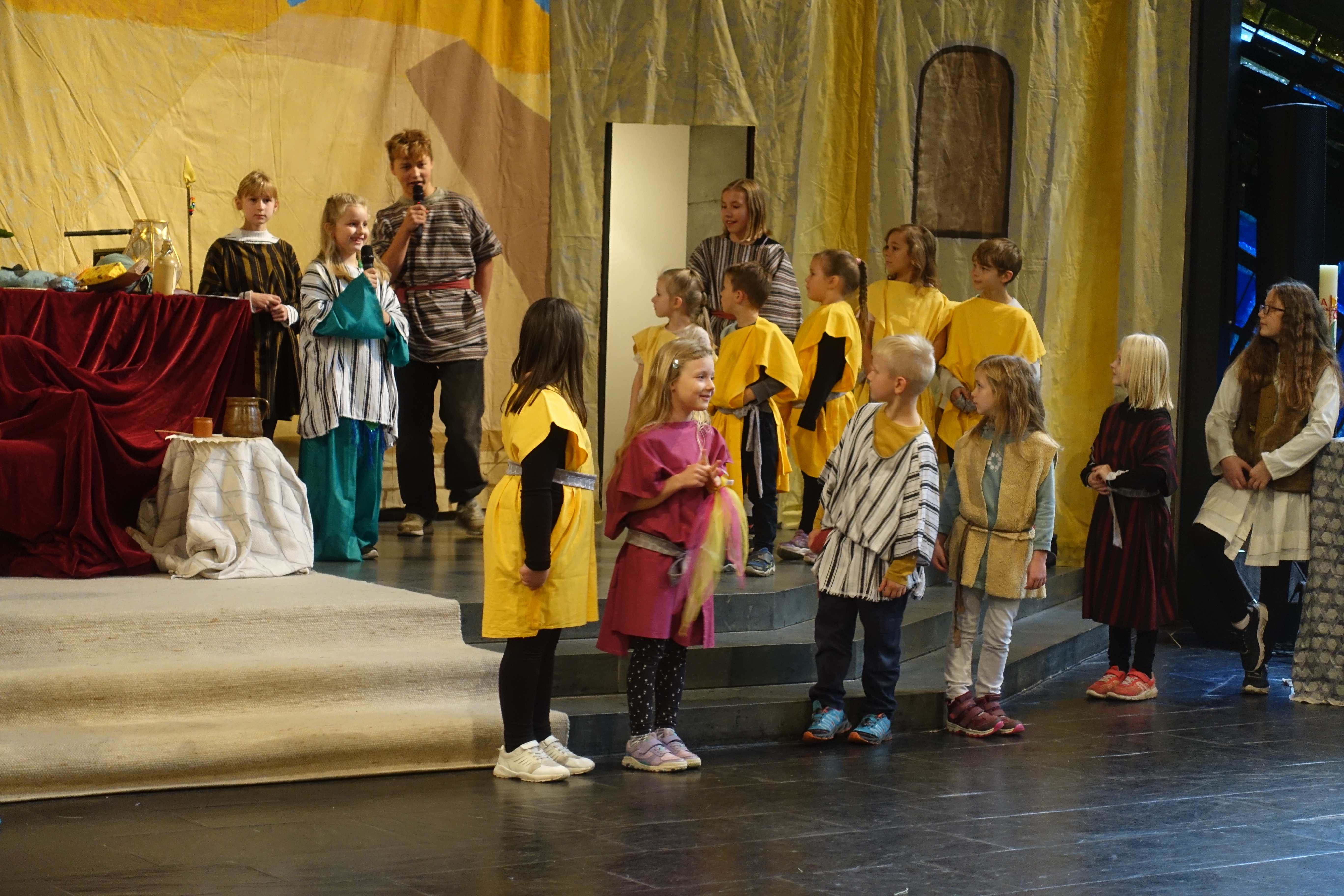 Neben dem regelmäßigen Singen in den Familiengottesdiensten wird einmal im Jahr ein großes Kindermusical mit aufwendigen Kostümen und Kulissen szenisch aufgeführt.